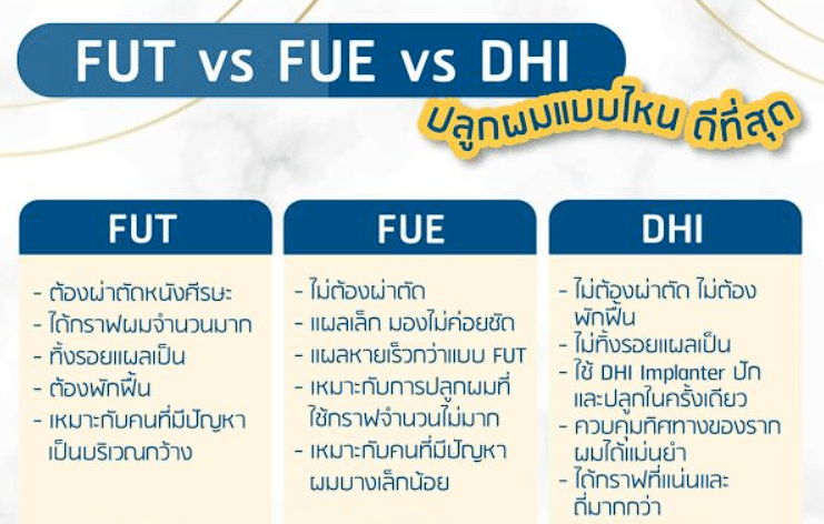 เจาะลึกวิธีปลูกผม 3 แบบ FUE, FUT และ DHI แบบละเอียด